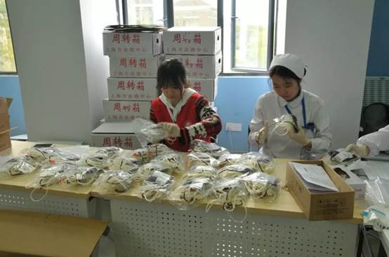 向同学们分发慰问品