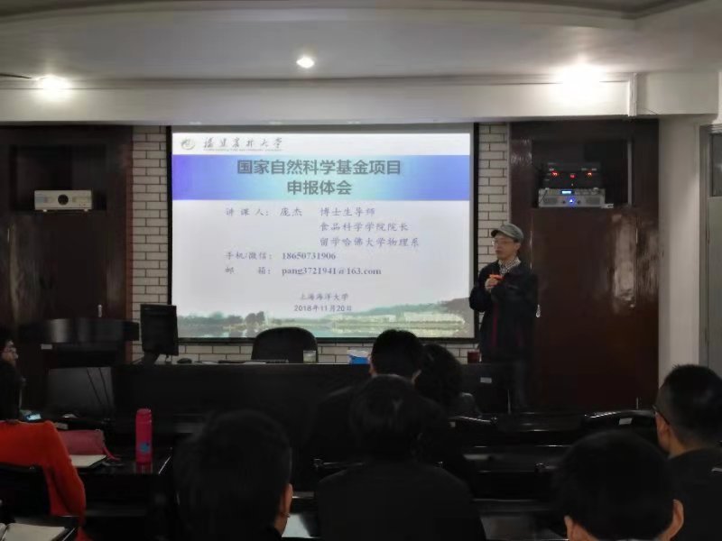 本次学术讲座开始由谢晶教授及各位师生对庞杰教授来我院进行交流表示热烈欢迎,并简要介绍了庞杰教授的科研成就等方面的情况。庞杰教授在讲座中围绕食品科学的基础问题、自然科学基金申报体会、水产食品关注的科学问题、如何提高申请书写作质量以及评审体会等多个方面结合自身的科研基础及基金申报、评审经验展开了深入的分析和讲解。