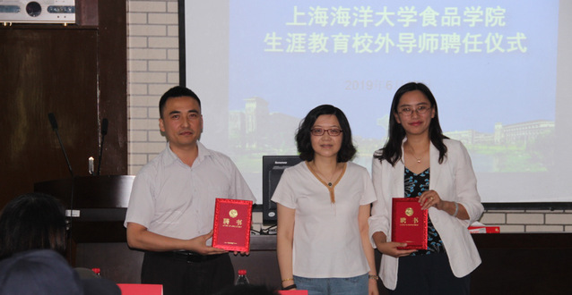 生涯教育校外导师聘任仪式(食品学院院长谢晶为两位校外导师颁发聘书)