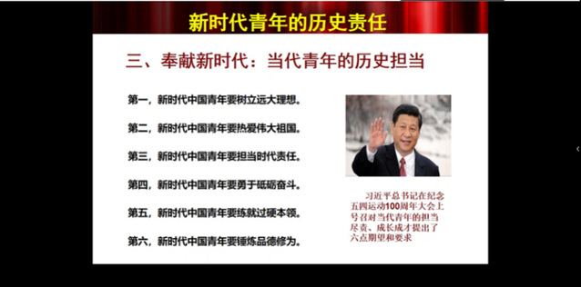 2020年4月28日,由食品学院团委活动部承办的“习近平总书记给北大援鄂医疗队全体90后党员回信——当代青年的历史责任”讲座在腾讯会议上如期举行,学院十分荣幸邀请到马克思主义学院孟庆梓老师为习近平新时代中国特色社会主义思想学习实践团食品学院分团173名成员开讲。