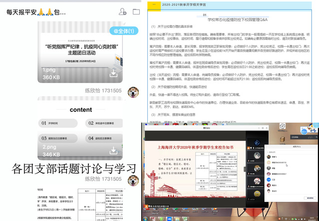 此外,还有15个团支部通过在线观看学习“‘新型冠状病毒科普知识’高校学生返校复课过程中如何做好防疫?”、“复学防疫小知识”等科普课加强疫情防控知识的宣传教育,了解同学们返校途中的安全注意事项及有关要求,提高全体成员的个人防护与消毒等知识与技能,以科学的行为方式和理性的态度对待疫情。