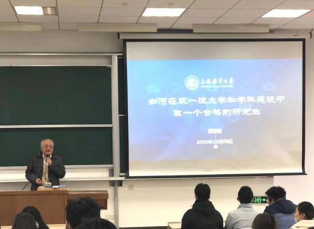 12月8日下午,食品学院在二教2101举办了2020级研究生新生讲座,特邀上海海洋大学原校长潘迎捷教授带来了《如何在双一流大学和学科建设中做一名合格的研究生》的专题,讲座持续了一个半小时,现场座无虚席。