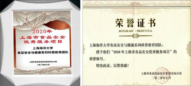 食品学院充分发挥学科优势,积极承接和参与社会服务培训工作任务,推动上海市食品安全与营养理念进社区、下基层,服务政府部门等活动,以实际行动助力“健康中国”战略。2020年食品学院先后承接并完成上海市临港新片区管委会委托的“食品安全宣传进社区项目”、上海市宝山区市场监督管理局委托的“食品安全事故应急处置演练及快检培训项目”、上海市浦东新区市场监督管理局委托的“食品监管干部培训项目”、南汇新城镇政府委托的“食品安全宣传培训活动项目”等一系列社会服务工作,年累计受益人数达2000人次。食品学院作为国家食物营养教育示范基地创建单位,积极承担社会责任,扩大了上海海洋大学食品科学与工程学科的社会影响力,获得上海市食品安全委员会办公室颁发的“2020年上海市食品安全优秀服务项目”荣誉称号。