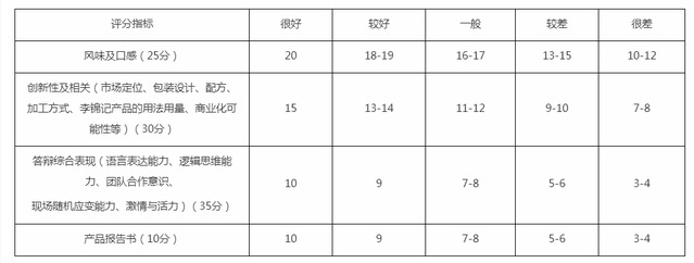 (2)每个团队3分钟,聚焦产品的创意来源、创新点、产品配方、工艺流程、营养和风味特征等要素,可同时展示PPT。
