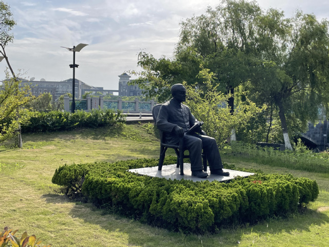 张闻天先生塑像位于学校历史长廊的朝海路上,他下颚微收,坐于长椅之上目视前方,仿佛在回忆过去、展望未来。张闻天同志是我校的杰出校友,1914年至1917年在我校就读,是中国共产党早期重要领导人、杰出的无产阶级革命家和理论家、忠诚的马克思主义者。他在长期的革命和建设岁月中建立了不朽功绩,赢得人民的崇敬和爱戴。他身上更是始终洋溢着一股“勤朴忠实”的母校精神。张亚琼老师向同学们着重介绍了张闻天先生“三次让贤”的故事,“由于张闻天先生善于潜心于理论研究而非实践,便有了三次让贤的佳话”。同学在围在张闻天先生的雕像旁认真听讲,无不被其勤朴忠实,不慕名利的精神感染着。