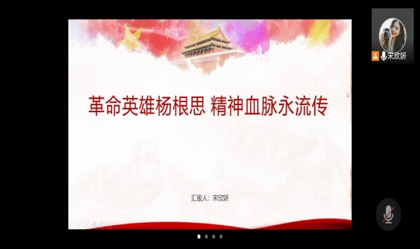 习近平总书记指出,只有坚持思想建党、理论强党,不忘初心才能更加自觉地担当使命,才能更加坚定要把学习贯彻党的创新理论作为思想武装的重中之重,并同学习党史、新中国史、改革开放史、社会主义发展史结合起来。“四史”内容各有侧重,但整体讲的就是中国共产党为人民谋幸福、为民族谋复兴、为世界谋大同的实践史。为此,20级食品4班团支部利用腾讯会议,来自上海海洋大学青年党史微课宣讲团的成员宋欣妍同学以“革命英雄杨根思,精神血脉永流传”为主题进行线上微课宣讲,食品4班全体同学参加了本次主题教育活动。