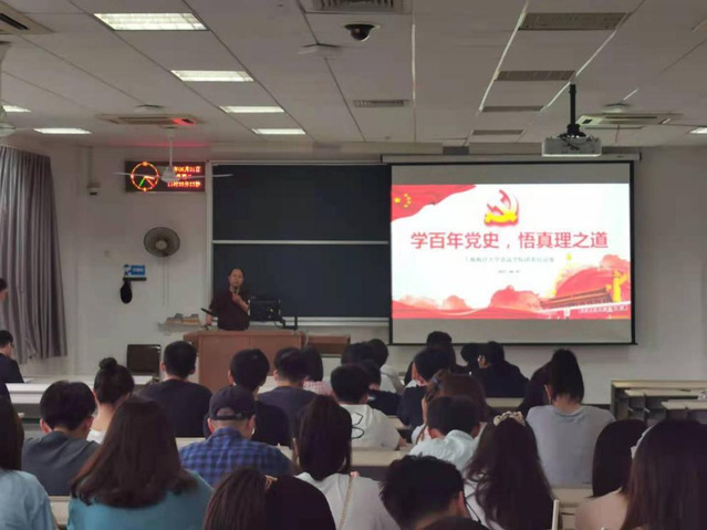 为庆祝建党一百周年,回顾党的光辉历程,讴歌党的丰功伟绩,提高同学们对党的认知与爱国主义热情,食品学院团委邀请了理论类社团指导老师孟庆梓为食品学院全体团学骨干以及青马同学进行了“学百年党史,悟真理之道”党史专题教育讲座,讲座于6月1日下午在3115教室举行。