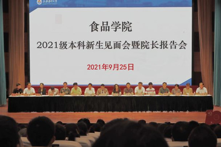 在庄严地齐唱国歌后,院长谢晶、副院长宋益善分别向本科、研究生新生表示热烈的欢迎和诚挚的祝贺,随后介绍了食品学科历史、专业设置、学院管理构架、师资队伍、就业情况等,让同学们了解了学科发展历程,学科特色与优势、学院所拥有的国家级实验教学示范中心、研究生教育、科研支持平台、优秀毕业生等。谢晶希望同学们能通过学院学校提供的平台,积极进取,努力地完善自己,做一个开朗、热情、有毅力、有勇气、有责任心、胸怀宽广、追求上进的人,实现人生价值和社会价值的统一。
