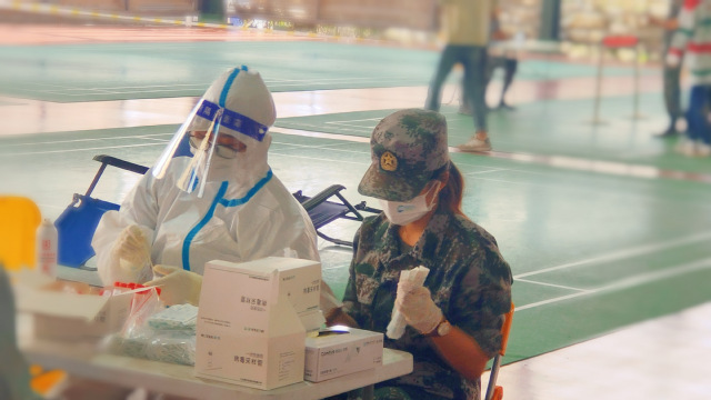 李心雨,上海海洋大学八一社成员,在核酸检测活动中主要负责帮助医生拆分试剂、查验人数、归档试管,确保整个核酸检测在进行时有序、准确。同时,她还和八一社其他成员在疫情期间一同帮助离校返家的同学们搬运行李、运送物资。