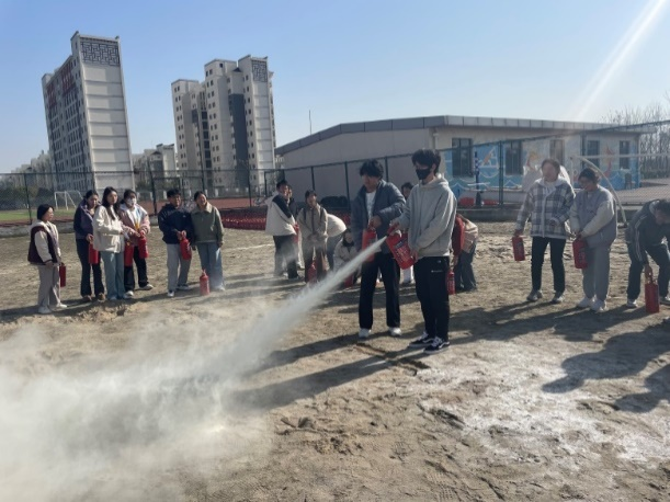 演习现场,陆老师模拟了一处空旷场地的火灾场景,展示了如何迅速扑灭火源与安全疏散人群等步骤,强调了在火灾中保持冷静的重要性,还对如何在火灾中寻找安全出口等技巧进行说明。师生们认真学习了消防安全知识,并手持灭火器开始灭火实操,还针对部分问题积极提问。大家纷纷表示,此次消防演习让自己更加了解了火灾的危害性,懂得了在火灾中如何保护自己和他人的重要性。
