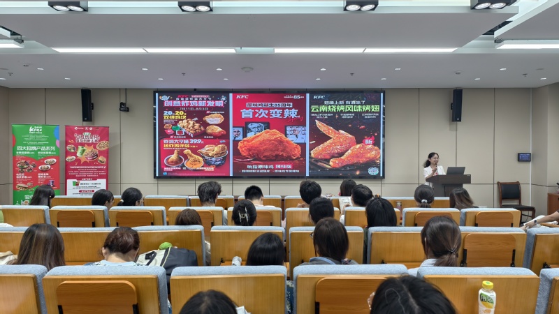 然后,吴颖老师和金颖老师为同学们介绍了“百胜中国”的品牌体系、荣誉经历、品牌优势、食品安全监控等经营理念与企业特色,让同学们更加深刻地了解了“百胜中国”的企业文化,为同学们的参赛作品的设计方向提供了更加直观的指导。